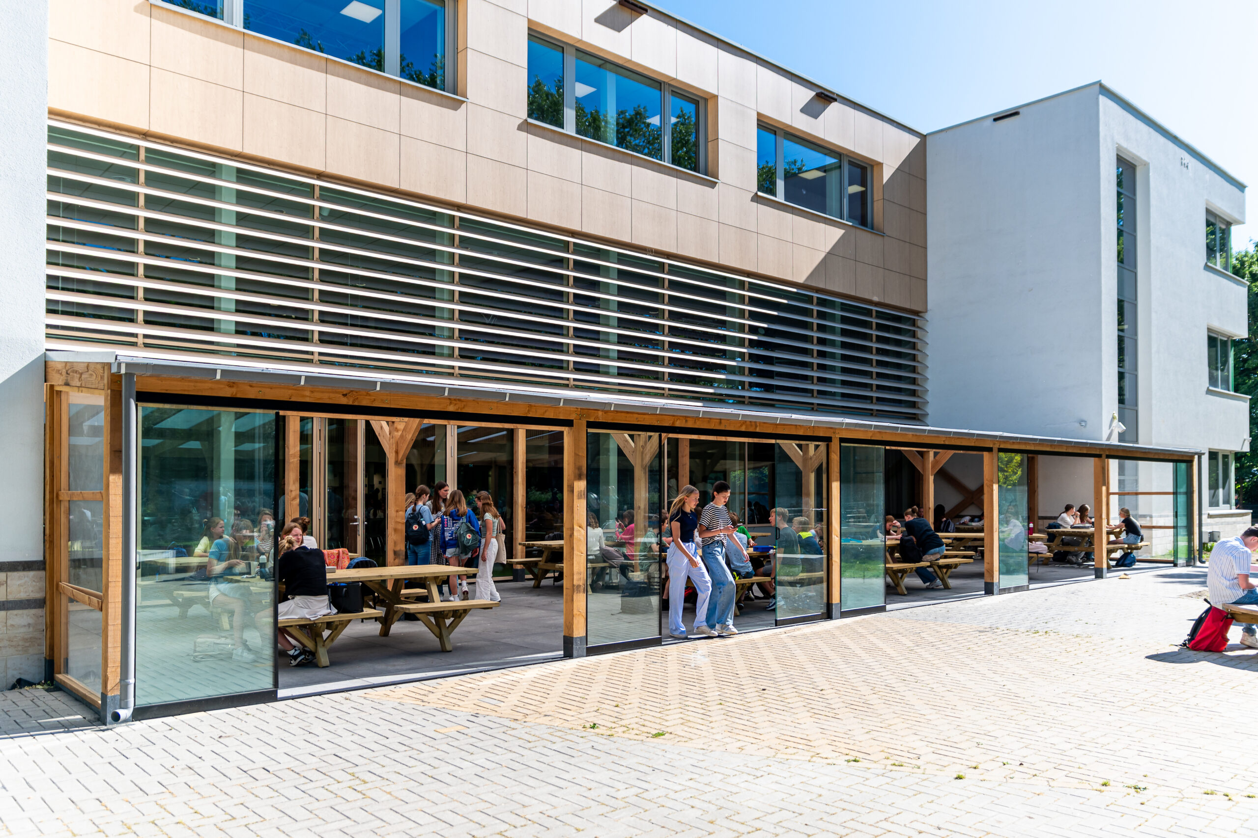 Ons schoolgebouw staat in de wijk Lunetten, met het treinstation op loopafstand. De school staat in een groene omgeving, waardoor de ligging in de stad niet opvalt. In 2020 is ons gebouw verbouwd en vernieuwd met het oog op de groei die de school in de afgelopen jaren heeft gekend. Daarmee heeft het gebouw een moderne, warme, lichte uitstraling gekregen. Omdat de groei groter is dan verwacht, zijn er enkele tijdelijke lokalen op het schoolterrein geplaatst en zien we uit naar permanente uitbreiding van ons schoolgebouw.